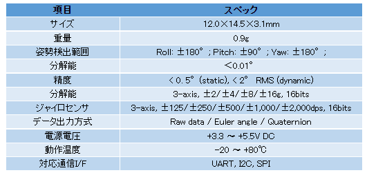 l MEMSベースの小型慣性計測ユニット(IMU)