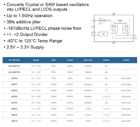 B) Ultra Low Phase Noise Translator/Buffer AZS10 & AZS15 と関連標準IC