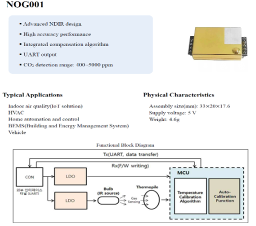 C) NDIR/ Non Dispresive InfraRed (非分散型赤外)方式CO2センサー NOG001
